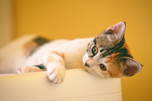 Imagine a moment of pure feline bliss. This close-up captures the irresistible charm of a calico kitten, sprawled luxuriously on